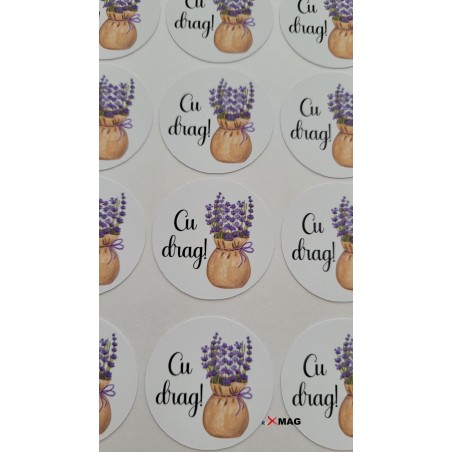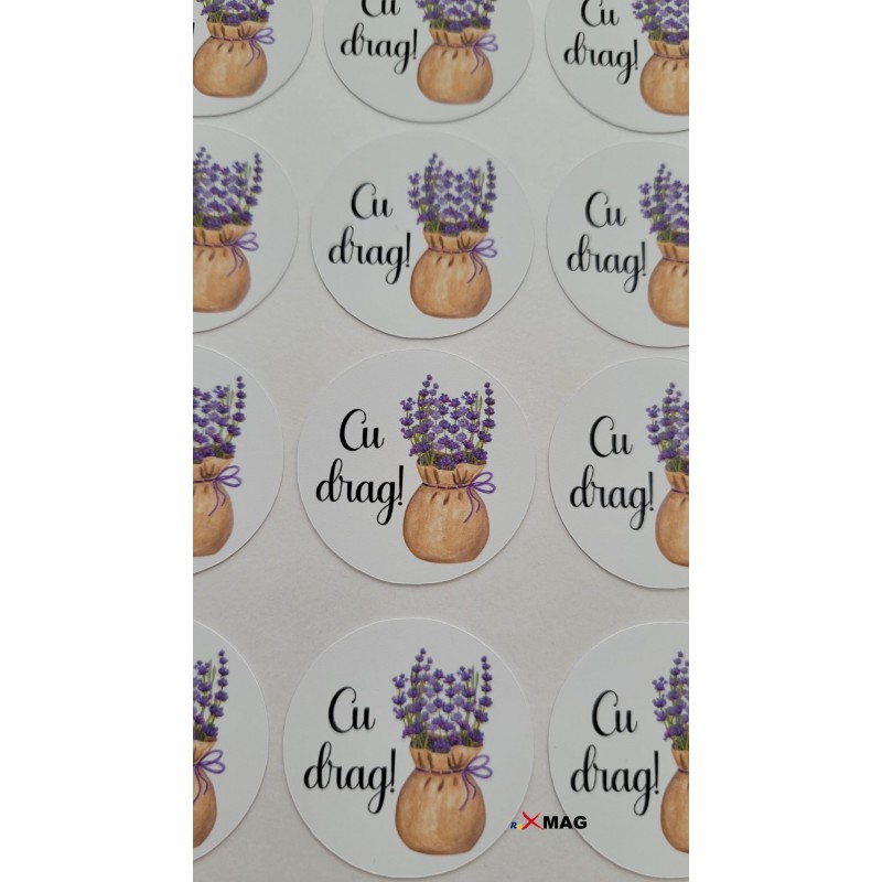 Realizate din hartie cartonata (cu gaura pentru snur) sau autocolanta.