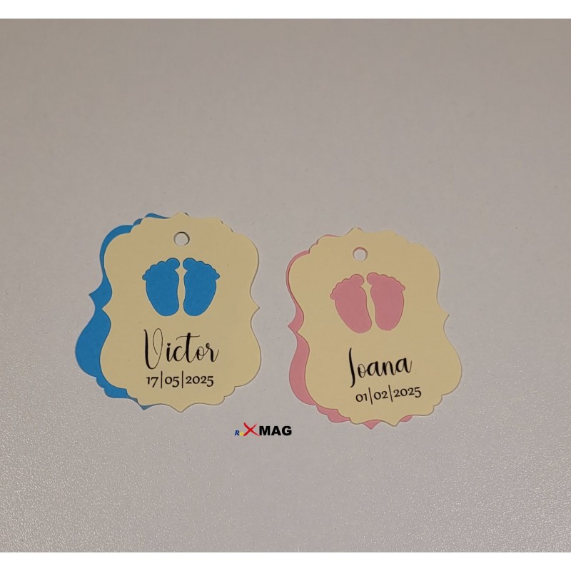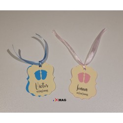 Eticheta finala este formata din doua etichete de culori diferite. Prima eticheta, cea din fata este personalizata cu text si are un decupaj in forma de picioruse. Eticheta a doua, cea din spate este nepersonalizata.