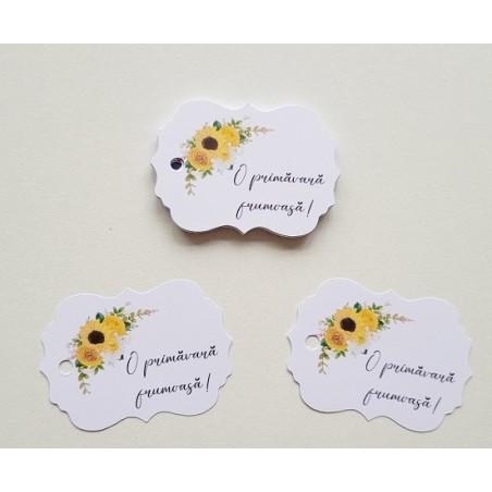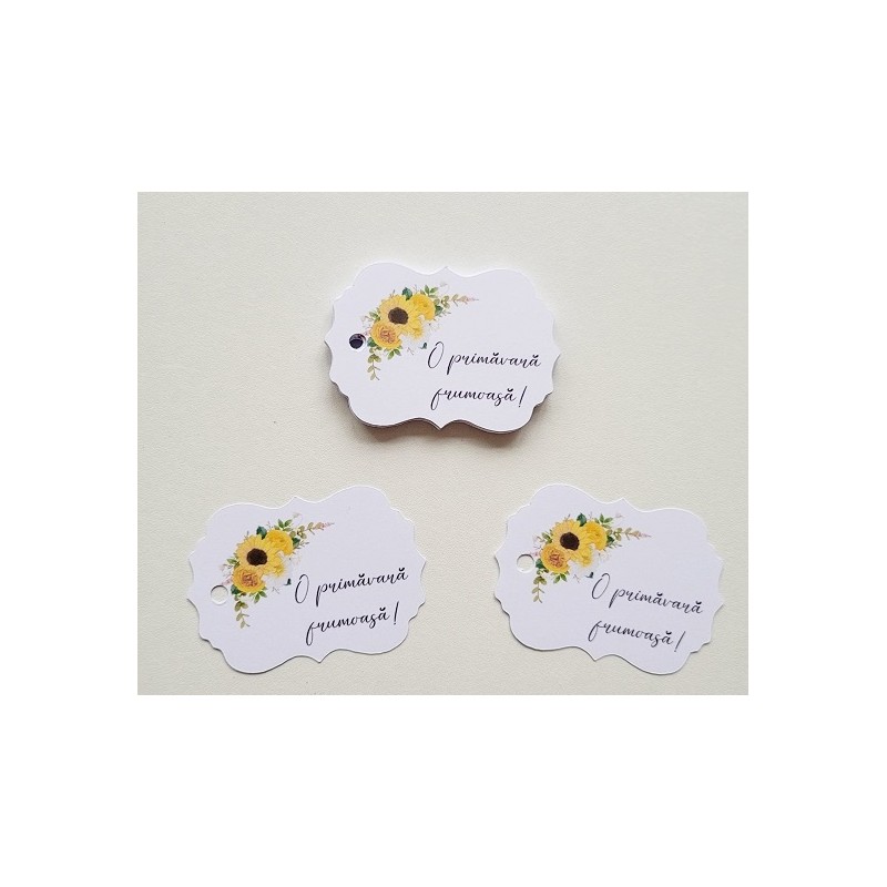Realizate din hartie cartonata de diferite grosimi (cu gaura pentru snur) sau autocolanta.