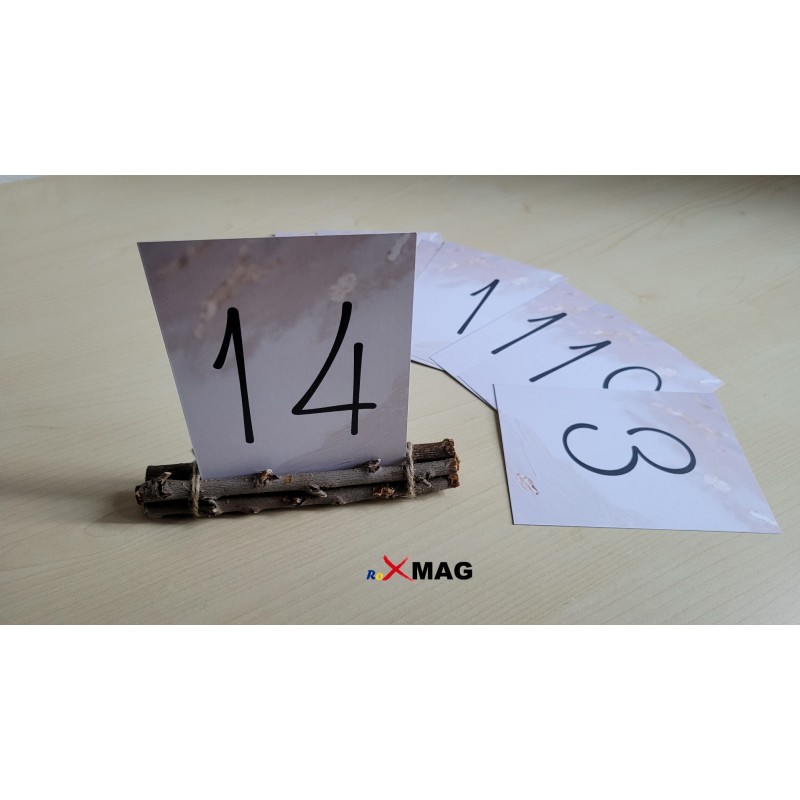 Suportul este realizat manual, din betisoare de lemn naturale. Potrivite pentru Numere de masa din carton cu dimensiunea de 10 cm latime. Suportul nu poate sustine numere de masa realizate din materiale grele. Se poate rasturna.