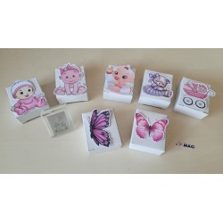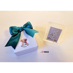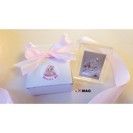 Se poate personaliza cu o eticheta in tematica dorita (va vom contacta dupa plasarea comenzii pentru a stabili tematica dorita). Culoarea fundei se poate alege.