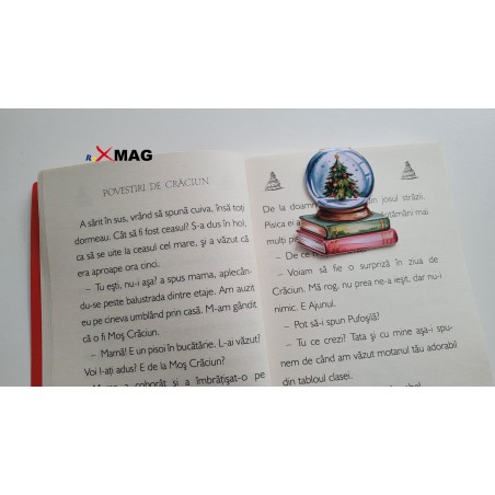 Acest semn de carte magnetic îmbină farmecul sărbătorilor de iarnă cu iubirea pentru cărți, având un design delicat: un glob de Crăciun așezat peste o stivă de cărți, simbol al poveștilor citite cu sufletul.