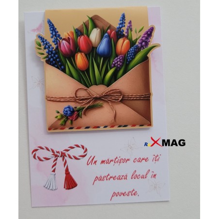 Martisor semn de carte magnetic tip clips - plic cu flori