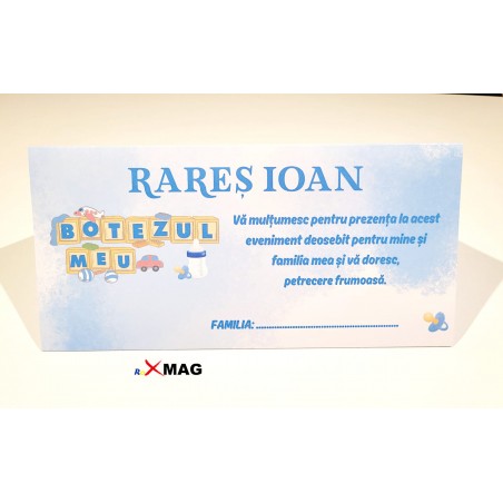În aceiași tematică puteți comanda: invitații, plicuri de dar, meniuri, etichete pentru mărturii, etichete pentru artificii de mana, props, ghirlanda nume, cartonase pentru ganduri frumoase. Daca nu gasiti pe site modelul dorit va rugam sa ne contactati, il vom personaliza imediat pentru Dumneavoastra.