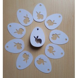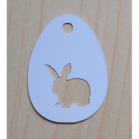 40 etichete cartonate in forma de ou cu iepuras decupat si gaura pentru snur .