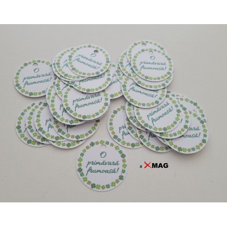 Realizate din hartie cartonata (cu gaura pentru snur) sau autocolanta.