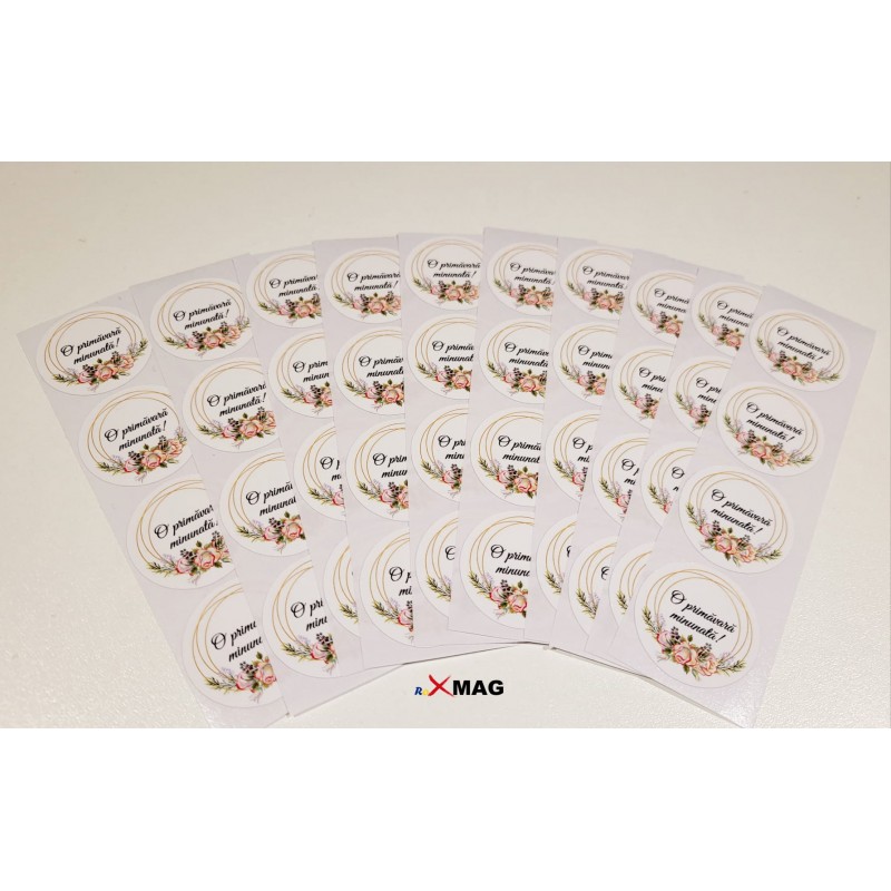 Realizate din hartie cartonata (cu gaura pentru snur) sau autocolanta.