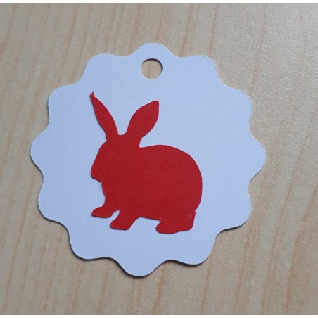 40 etichete cartonate in forma de ou cu iepuras decupat si gaura pentru snur .